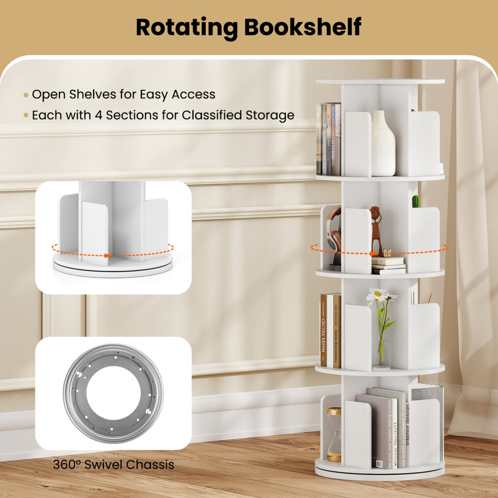 ● Ample Storage Capacity: The 4-tier rotating bookshelf provides plenty of space for storing comic books, photos, and decorations. Each tier is divided into 4 sections by dividers, allowing for an organized and visually appealing display.