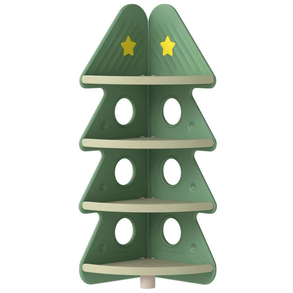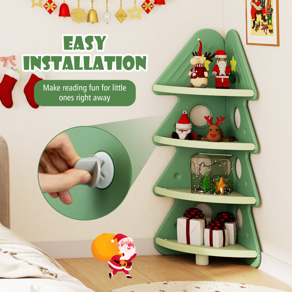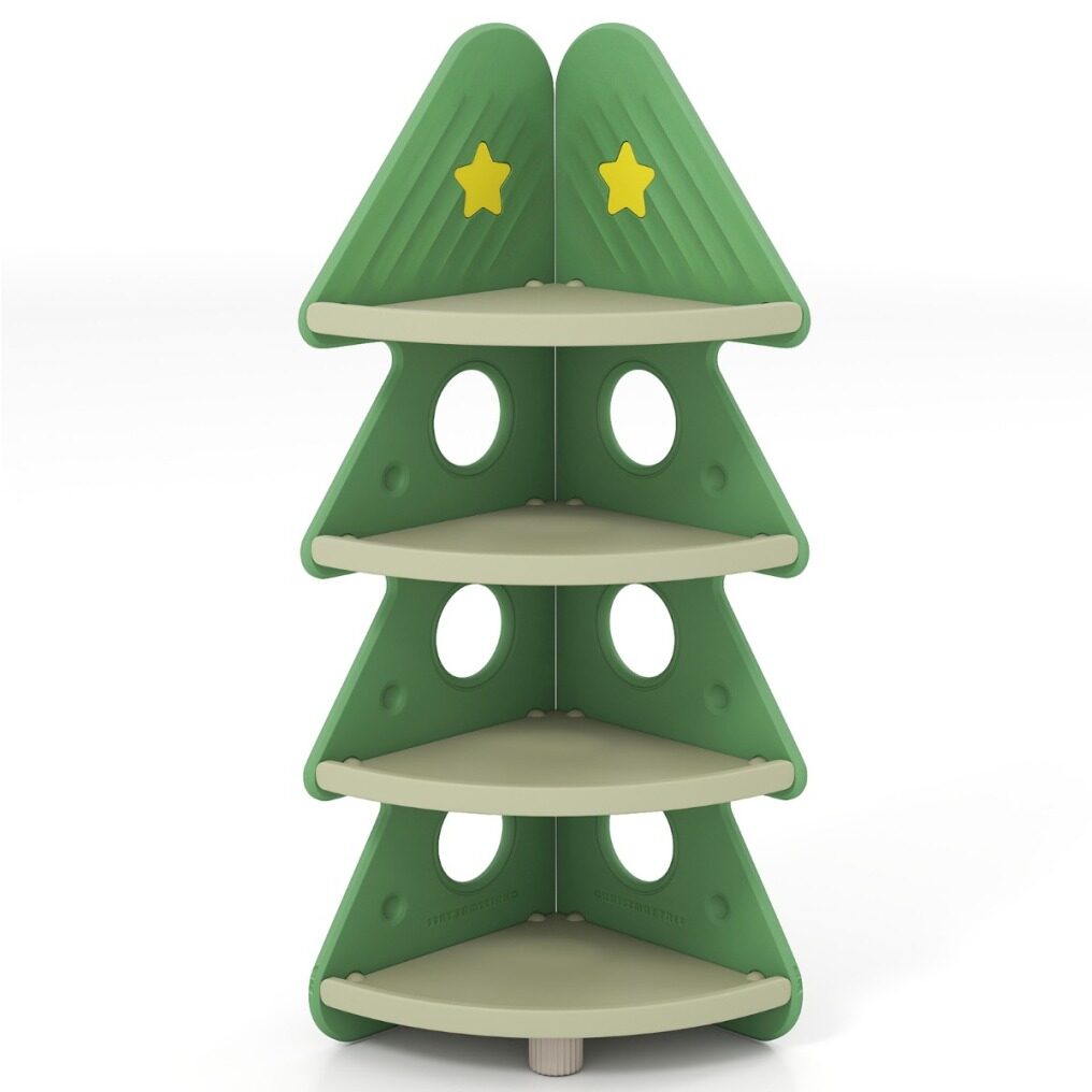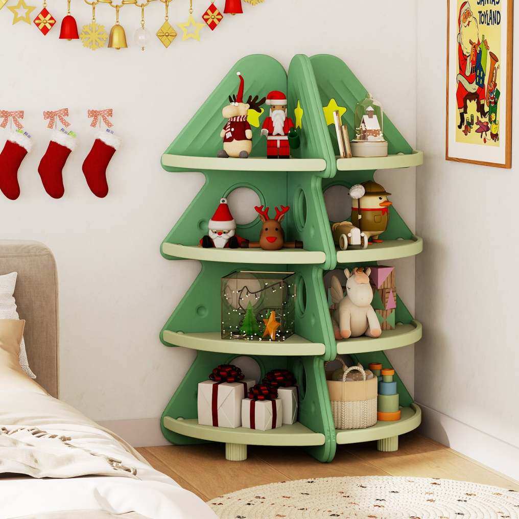 Playful Christmas Tree Design: This enchanting 4-tier kids corner bookshelf features a unique Christmas tree silhouette and cheerful star patterns. It instantly brings holiday cheer to kid's room, making story time magical for children ages 3 and up.
