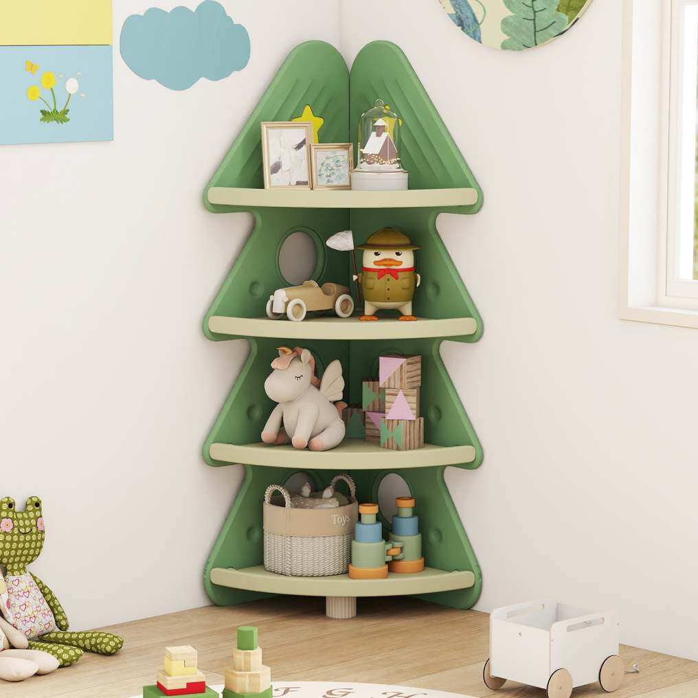 Its clever corner design offers space-saving storage that fits snugly into any room, making the most of every inch. Safe shelves, happy readers. This 4-tier organizer features a comprehensive safety framework for kids' book storage. Crafted with a sturdy triangular frame, reinforced legs, smoothly rounded edges, and a secure anti-tipping kit, it ensures stability and peace of mind. At a kid-friendly 123.5 cm height, little ones can easily access their favorite books and toys. This stylish corner bookshelf balances safety and functionality perfectly. Plus, its straightforward assembly allows parents to quickly create a cozy, organized reading nook that keeps children safe and engaged.