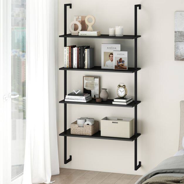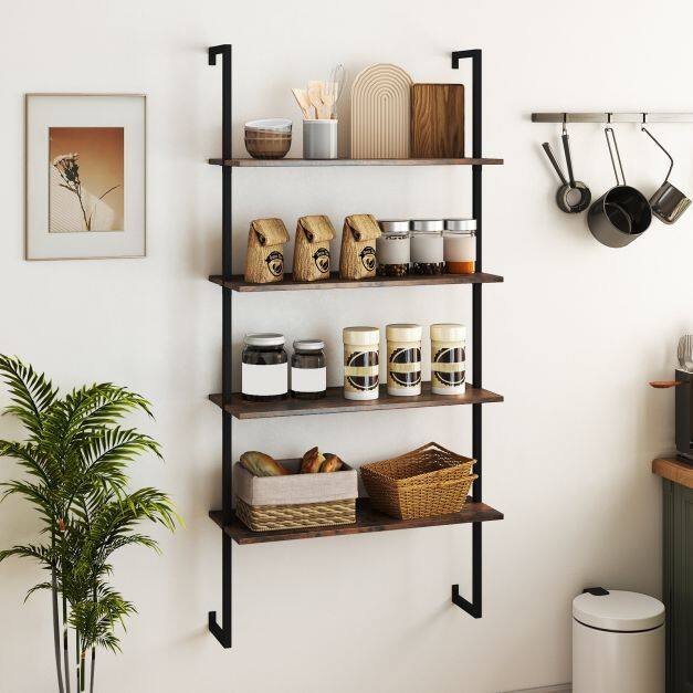 Create a Neat Space: Equipped with 4 large shelves spaced 31cm apart, this floating pipe shelving efficiently houses books, potted plants, dinnerware, decorations and so on, helping you maintain a tidy environment.
