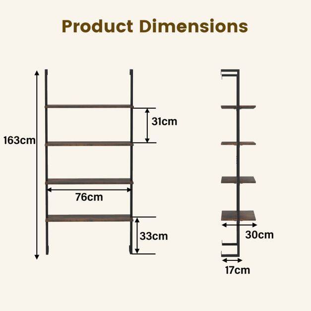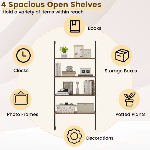 Stylish & Appealing Look: The wood textured panels of the ladder shelf are combined with industrial/modern appearance, adding a sophisticated touch to any decoration. The smooth surface is also scratch-proof and simple to maintain.