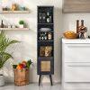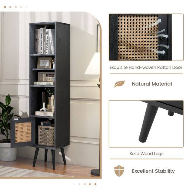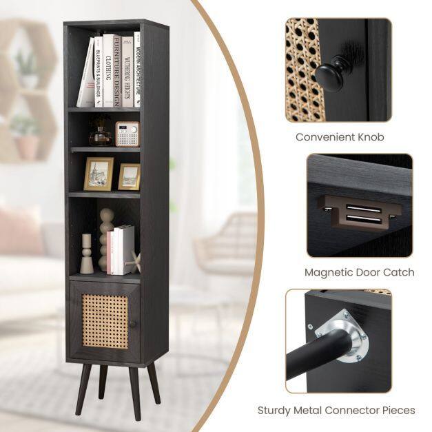4 Tiers Rattan Storage Cabinet with Slim Design-Black