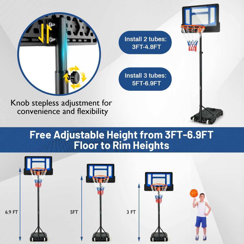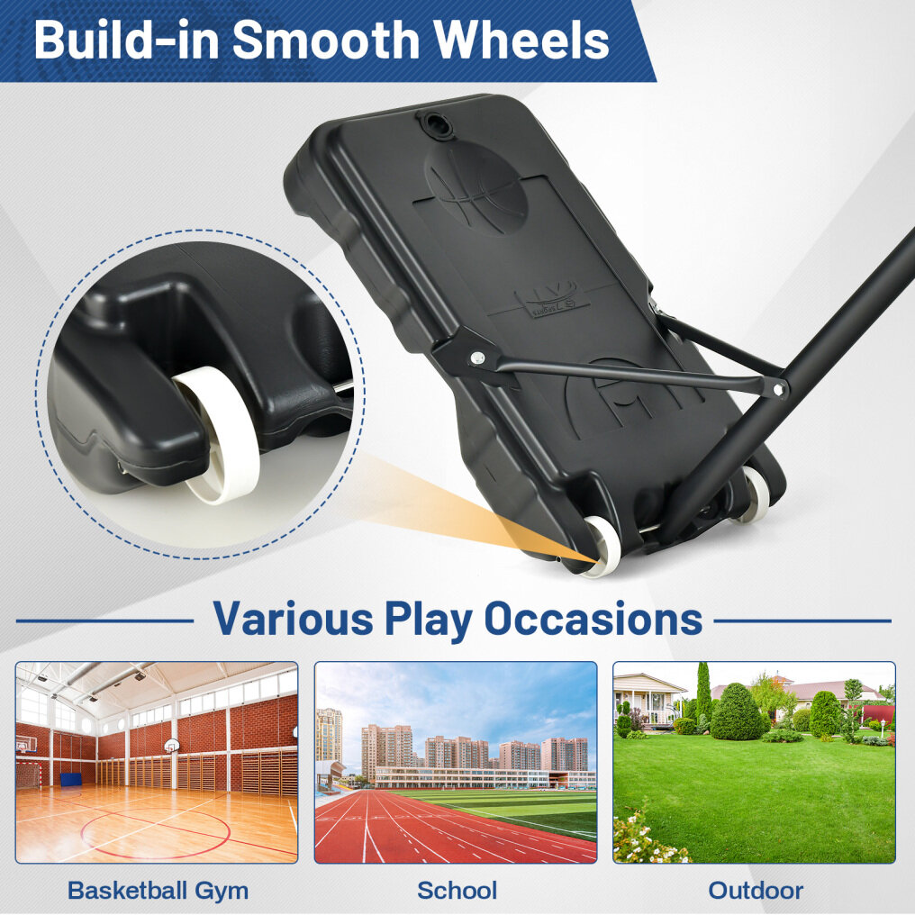 Various Playing Ways: Equipped with built-in smooth-rolling wheels, this basketball hoop for kids allows easy mobility and you can push it to different indoor or outdoor locations, such as driveways, gymnasium or school for your child to practice there.