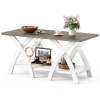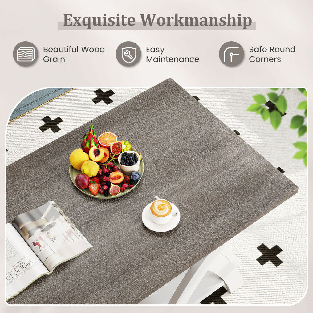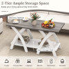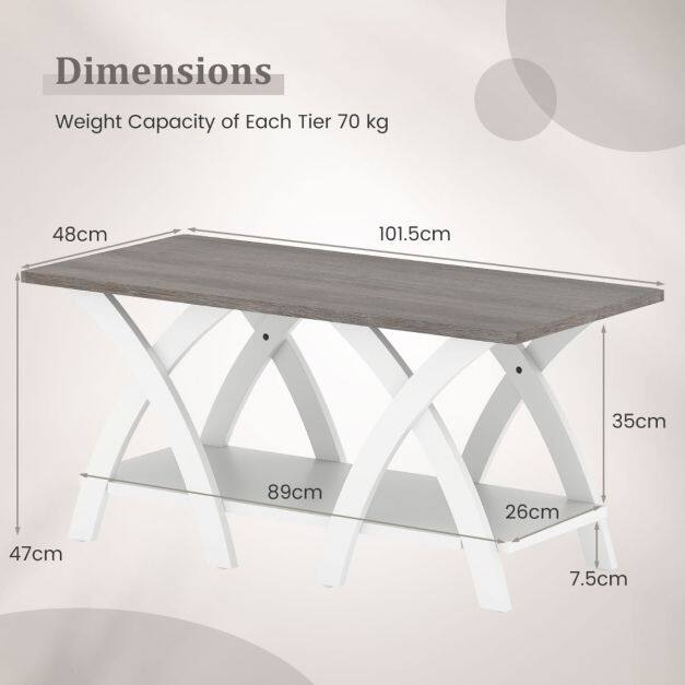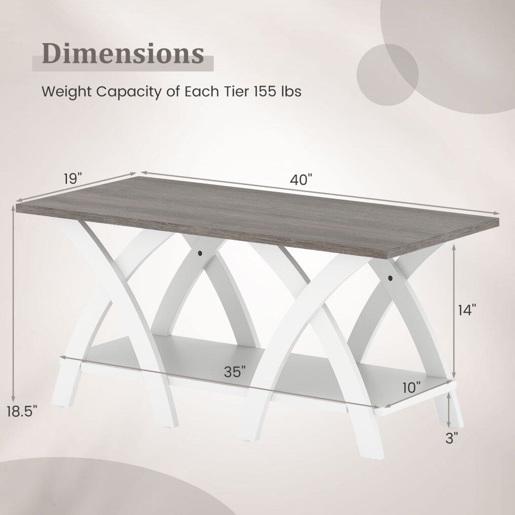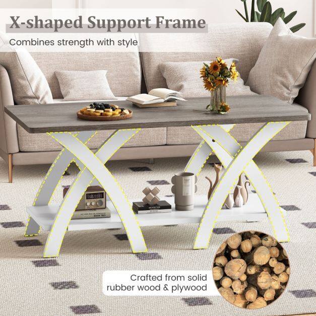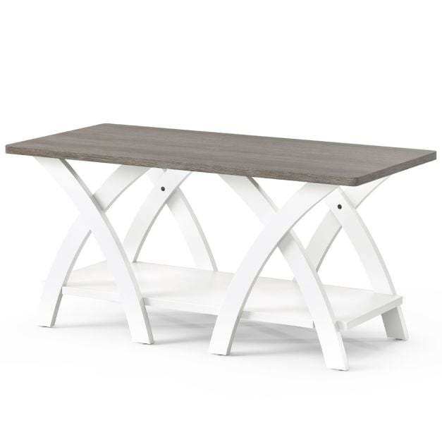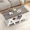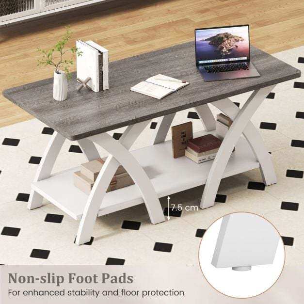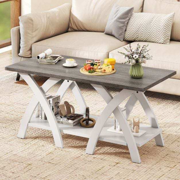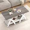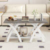 ● Farmhouse Aesthetic: Warm wood-grain panels and bold X-shaped legs give this 2-tier coffee table an inviting rustic charm that complements both modern and traditional decorations.