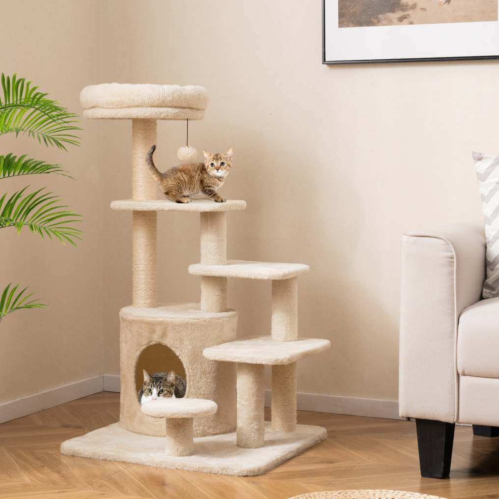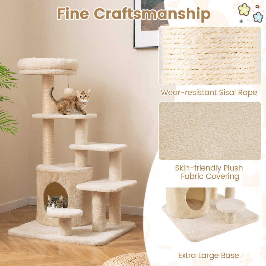 【Cat-Friendly Multi-Level Layout】The 102cm cat tree is designed with several well-spaced platforms, serving as steps for less agile cats to climb and explore different levels comfortably. Thus, the multi-level structure is perfect for kittens, munchkins or senior cats.