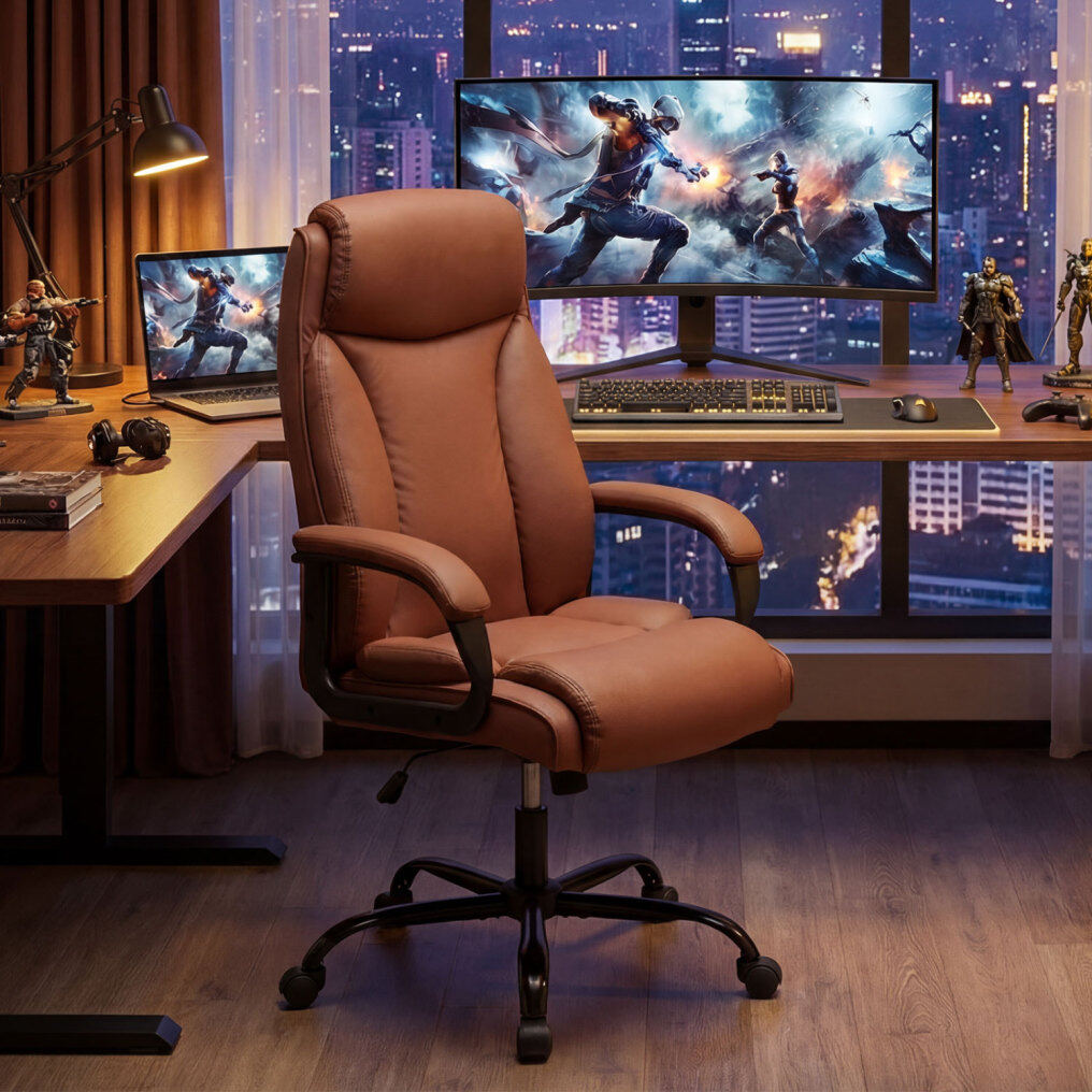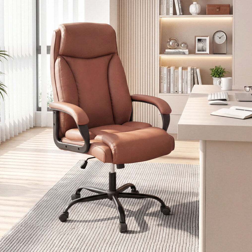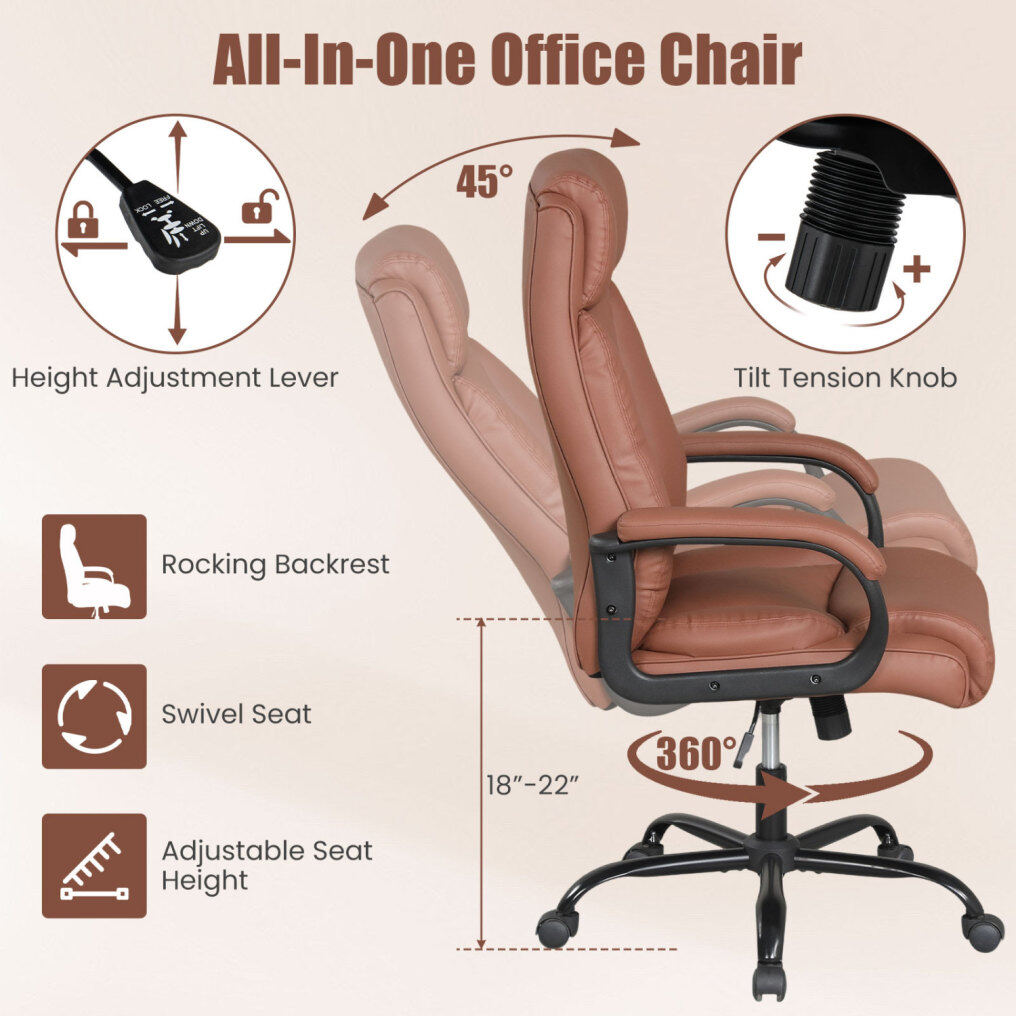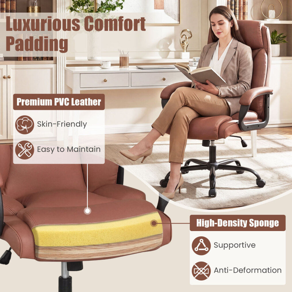 ● Durable and Comfortable Cushion: The home office chair is filled with high resilience sponge, the padded seat cushion and backrest are soft enough for long-time working or studying. More, the selected leather features high resistance to water, scratch, and split, ensuring the long-last serving time.