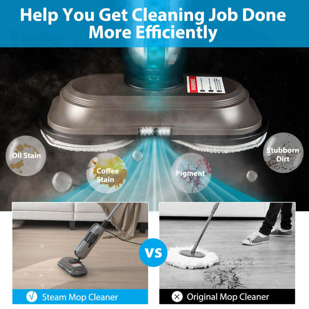 -Dual rotating mop heads spin 210 times per minute for efficient cleaning