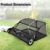 ● Convenient Storage and Wide Application: This lawn sweeper can be easily folded for compact storage against walls when not in use, requiring no tools. Effortless to deploy and store, it suits multiple scenarios, from residential gardens to larger commercial landscapes.