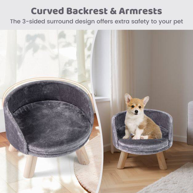 This luxurious pet sofa features a cozy high-density cushion that provides ample space and exceptional comfort for your furry friends. The skin-friendly fabric ensures a gentle touch, making it perfect for your pet to relax and unwind. The pet couch is supported by solid pine wood legs that offer reliable stability and add a touch of elegance to its overall appearance. Setting it up is a breeze with its quick and easy installation process, simply attach the 4 sofa legs, and it’s ready for your pet in no time. Additionally, the pet sofa bed is designed with a curved backrest and armrests on three sides, which not only prevent your pet from falling off but also provide supportive and comfortable lounging options that cater to their natural needs.