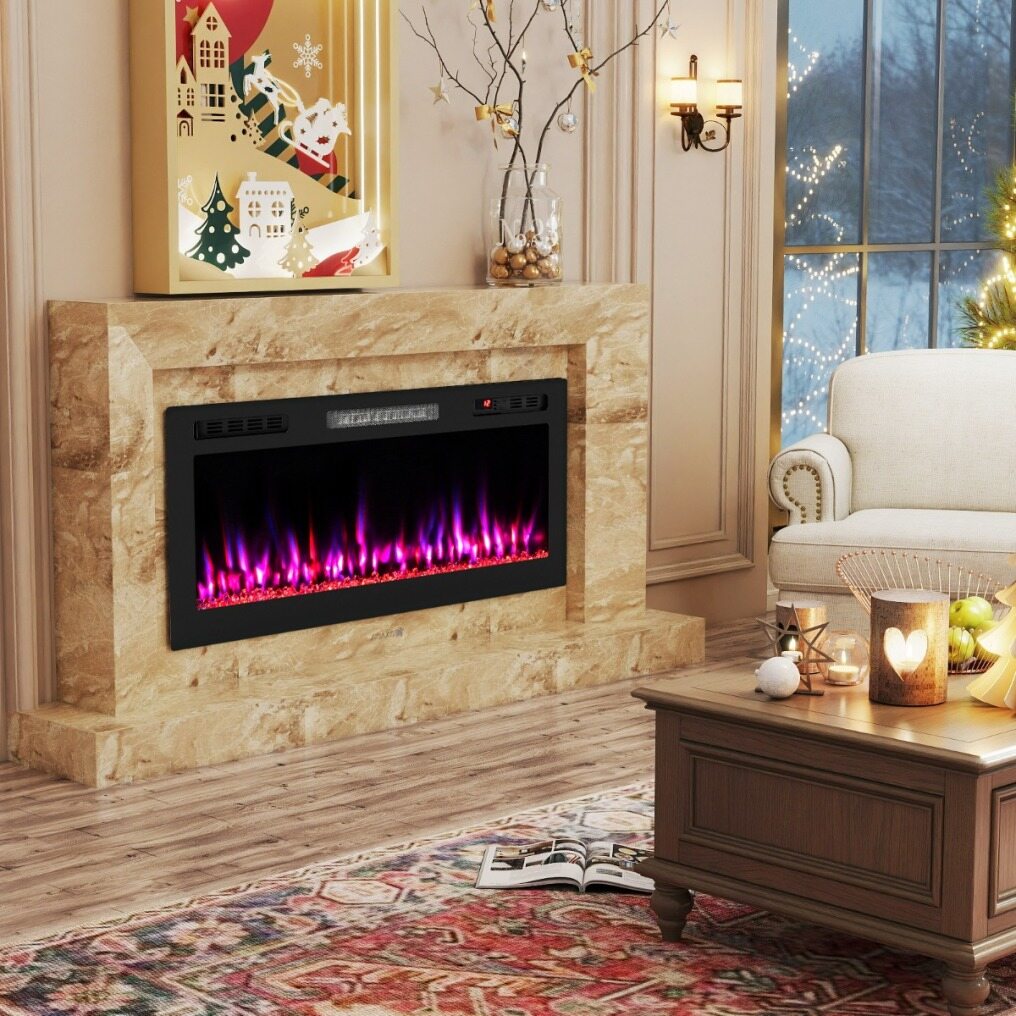 【Safety and Timer Features】This built-in fireplace is equipped with a flexible 1-12 hour timer for automatic shut-off, for added convenience. It also features overheat protection for safe and reliable use.