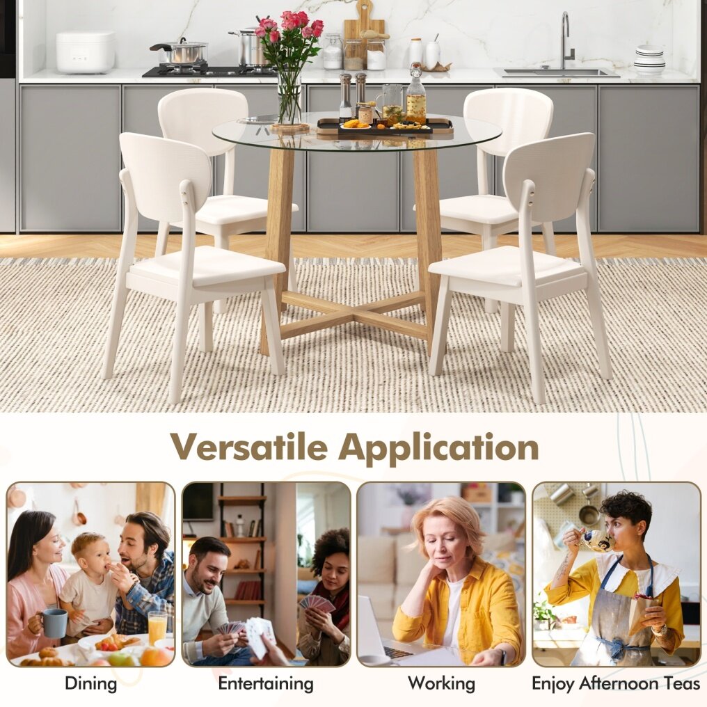 ● High-Quality Tempered Glass Tabletop: The dining table boasts a premium tempered glass tabletop, which is heat-resistant, explosion-proof, waterproof, and easy to clean, providing a sleek and practical dining surface that withstands daily wear and tear.