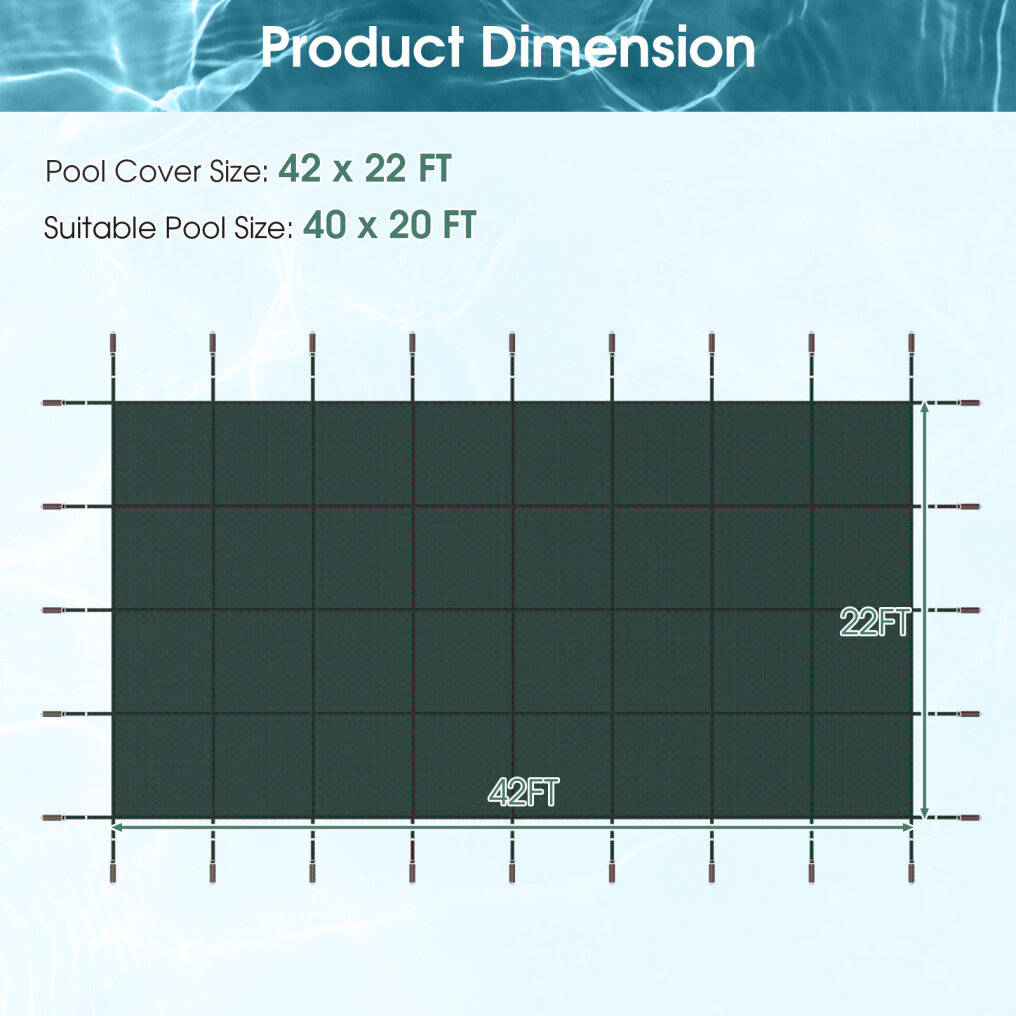 ● Keep Your Pool Clean: This 22 x 42 FT pool cover is expertly designed for 20 x 40 FT pool cover. It keeps your pool remains clean and free from debris, fallen leaves, and snow, which is perfect for various pool settings, such as homes, gardens and hotels.