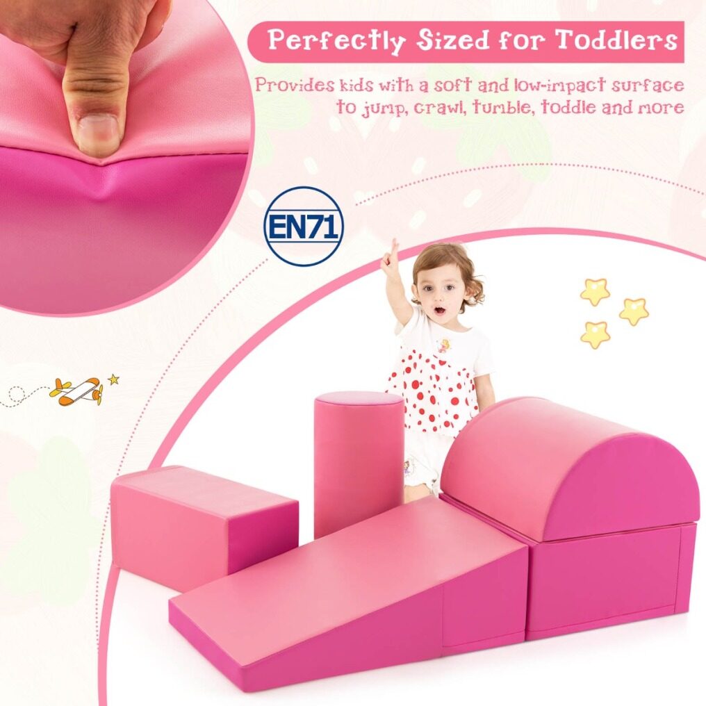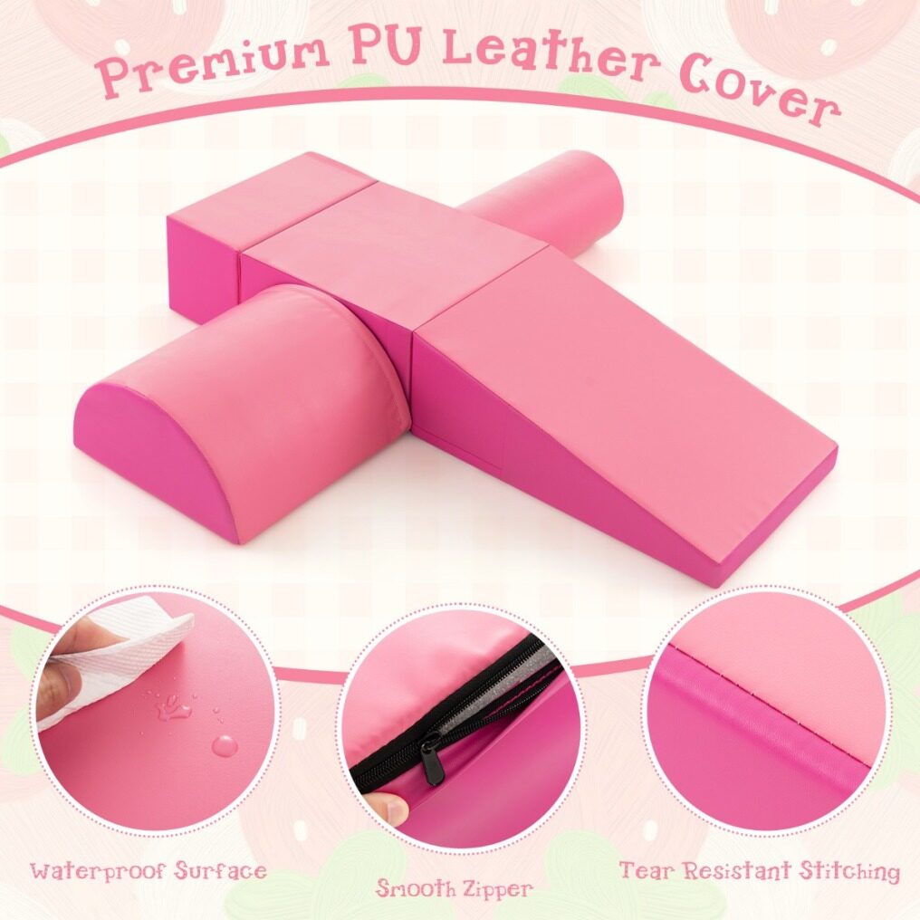 ● Easy Maintenance and Storage: The PU cover is waterproof and easy to wipe down. Plus, the zippered cover is easily removable for deep cleaning. The lightweight and stackable design allows for convenient and space-saving storage of this 5-piece foam playset.
