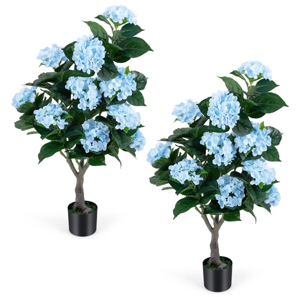 ● Bring Lifelike Beauty Indoors: These artificial hydrangea trees feature 11 brilliant blooms, 130 lush green leaves, and natural-looking trunks to replicate the charm of real plants. The pots are decorated with lifelike grass, adding extra vibrancy and a refined touch to your space.