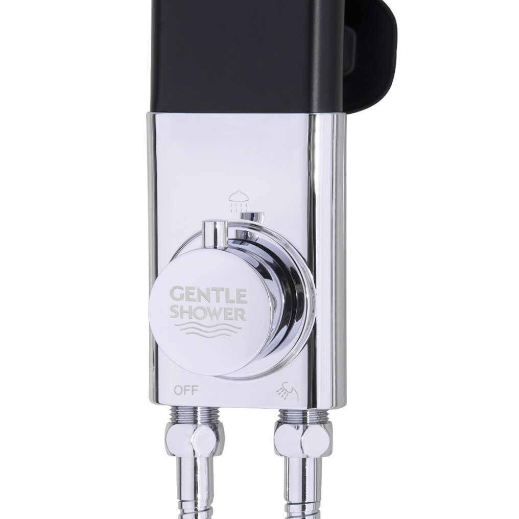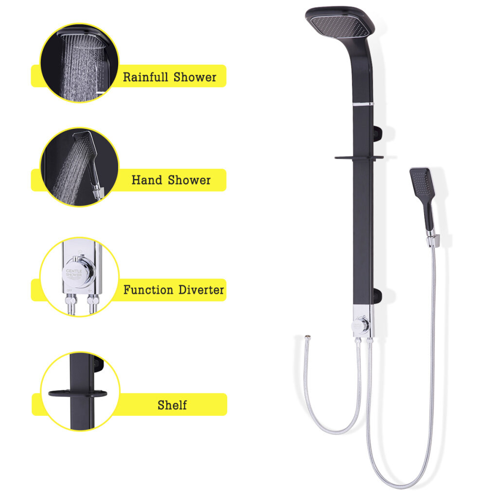 Equipped with head shower, hand shower, water mixer, it is a perfect addition to any modern shower design and adds a functional touch to your bathroom decor that feature similar contemporary style fixtures. It is sure to become the focal point of your bathroom.