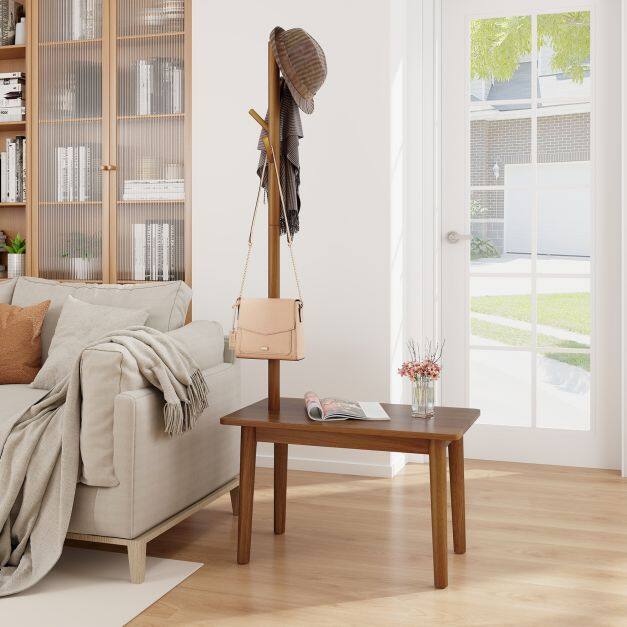 Solid Wood Construction: Crafted from natural rubber wood and acacia wood, the coat rack with side table is durable and sturdy. In addition, the reinforced connections enhance overall steadiness.