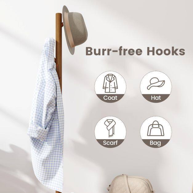 3-in-1 Multi-use Design: This solid wood coat tree perfectly combines the functions of a coat rack, side tableand shoe bench. Moreover, the tabletop has a strong weight capacity of 150 kg.