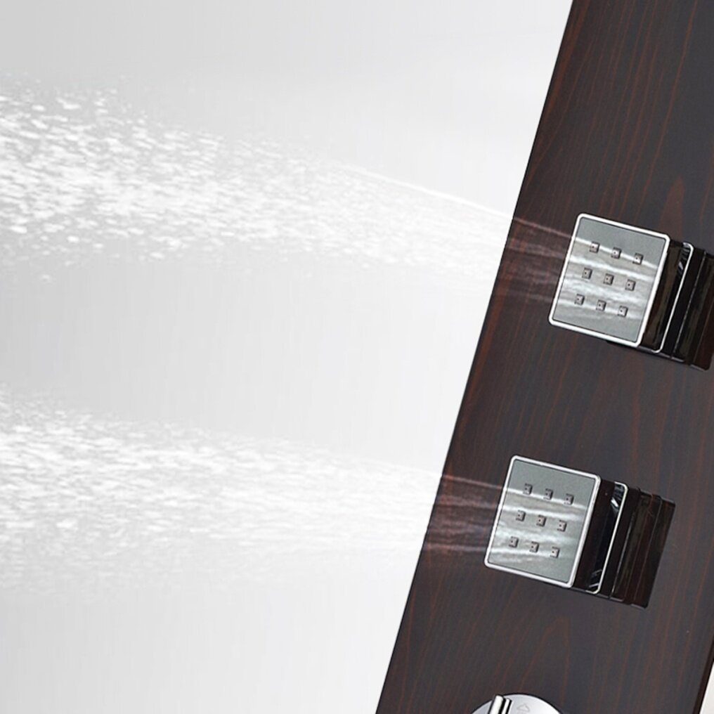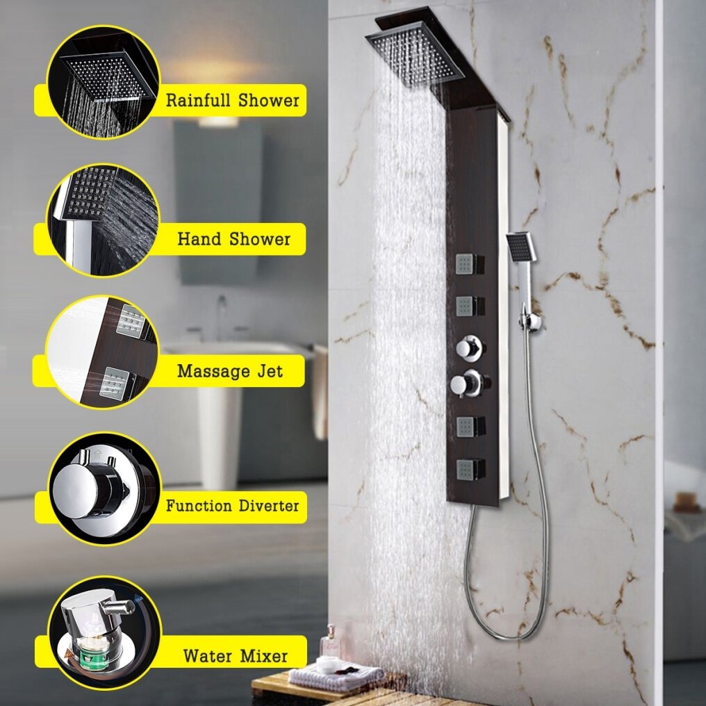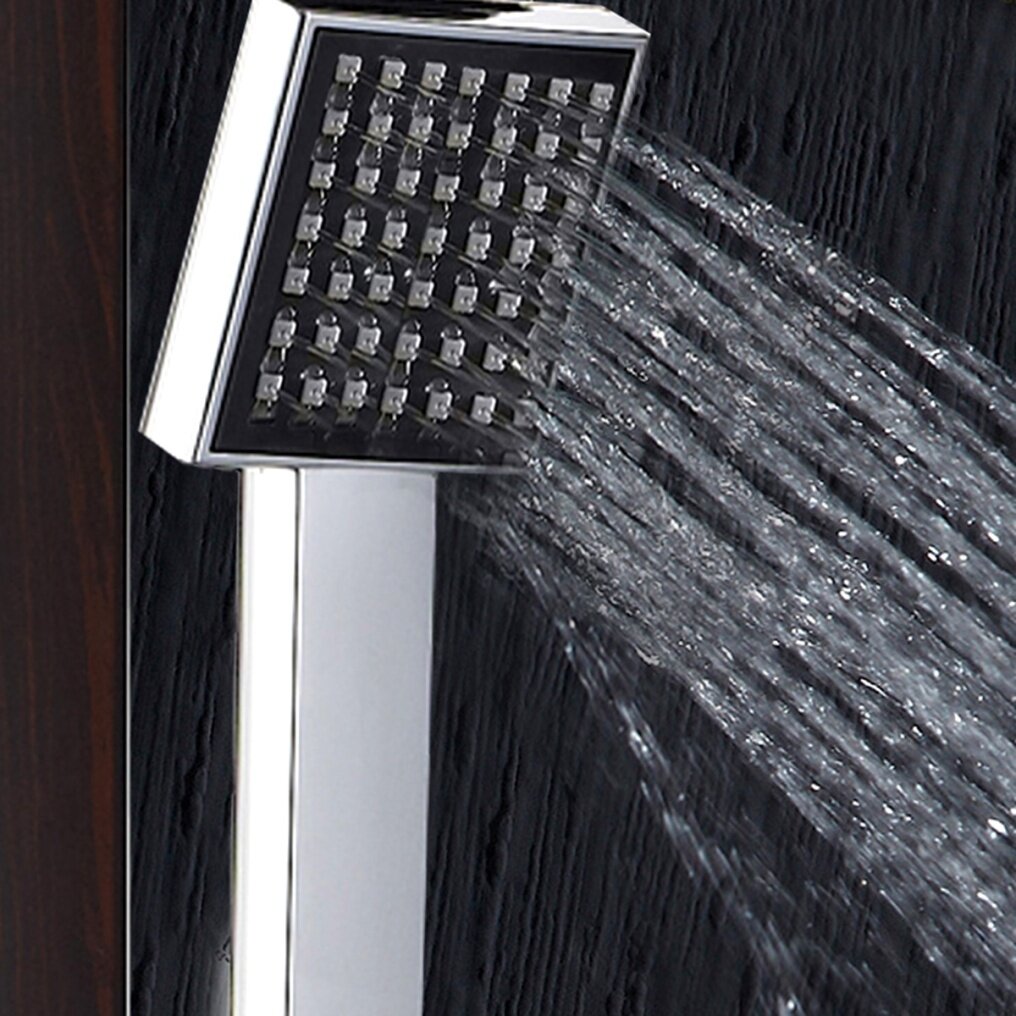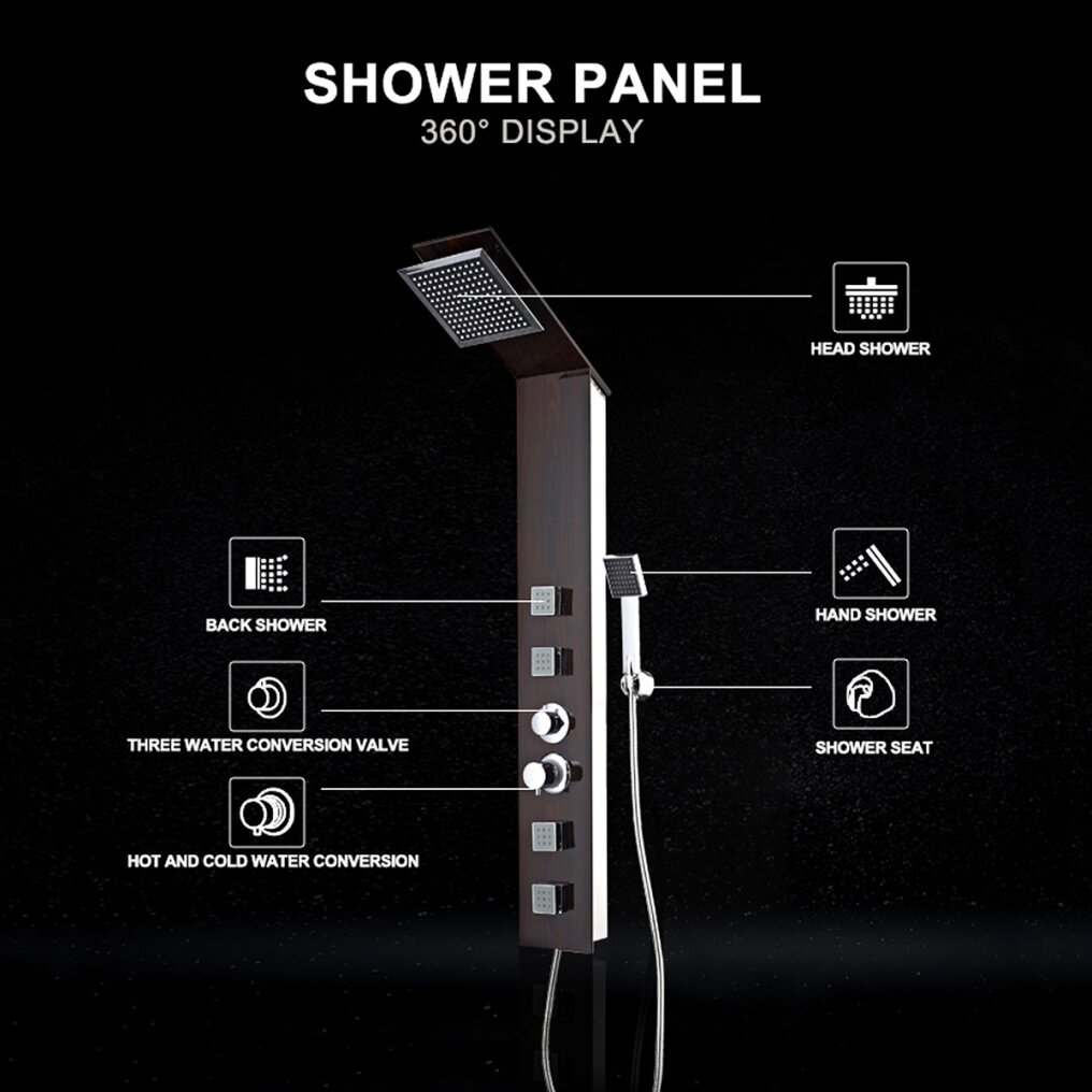 It features 3 stage shower function :Head Shower, Strong Massage Spray, Hand Shower. This all-encompassing massaging shower panel exudes luxury and comes equipped with everything you need for the ultimate shower experience.
