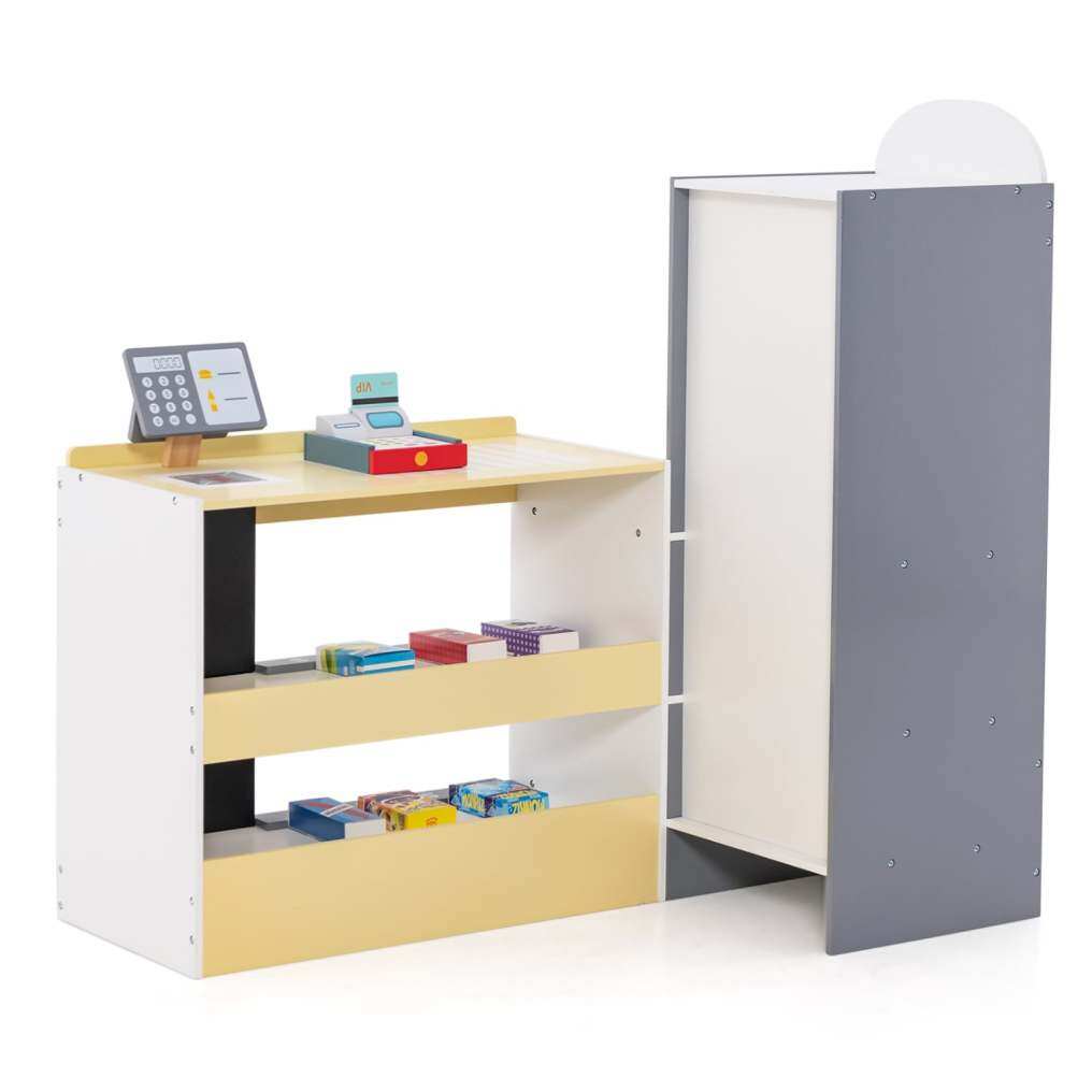 Reliable and Child-safe Materials: Made of thick panels and solid wood materials, this pretend-play grocery store allows for long-lasting service life. The burr-free solid wood handle is easy to grip. Child-safe acrylic and round corners ensure kids' safety. It also has passed ASTM and CPSIA certifications.
