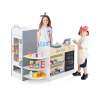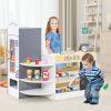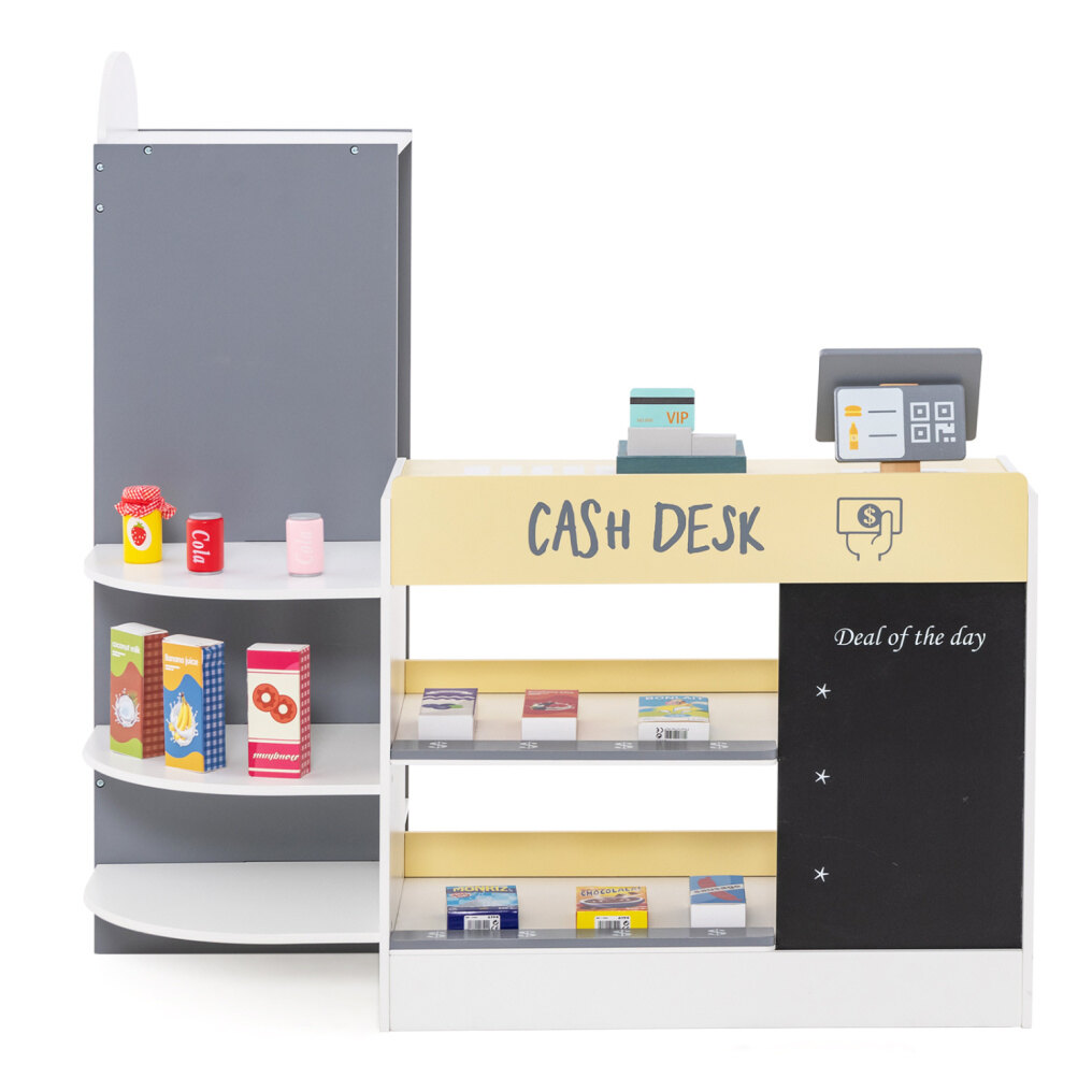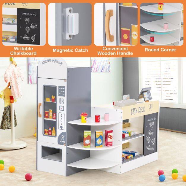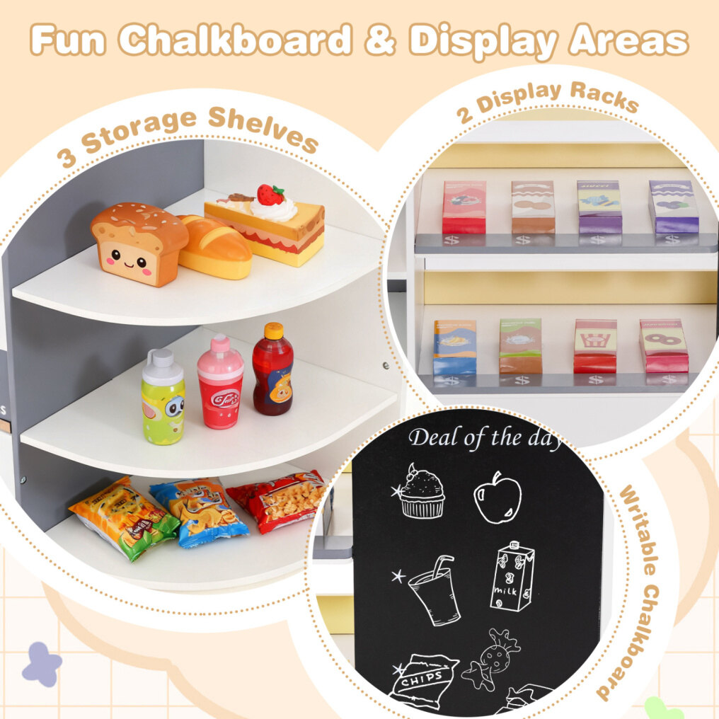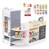 Fun Chalkboard and Display Areas: The writable chalkboard offers kids an additional area to write special deals, which is great for their hands-on ability. In addition, 3 storage shelves and 2 display racks provide kids with ample storage space to accommodate a variety of play food and sundries.