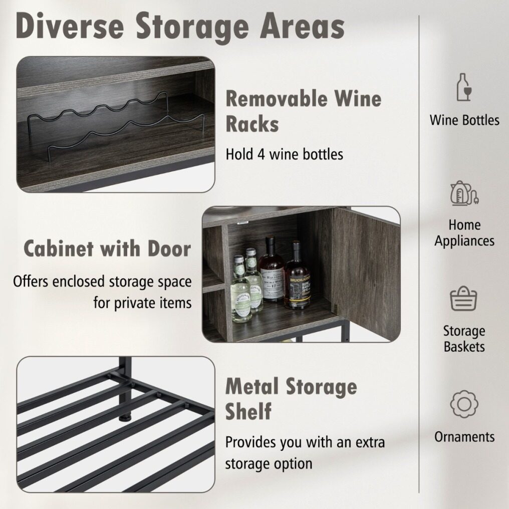 Diverse Storage Areas: With removable wine racks, the coffee bar cabinet will hold 4 wine bottles. What’s more, the cabinet with door and storage shelves provide more storage options. You are able to organize a variety of items, such as home appliances, storage baskets, ornaments, etc.