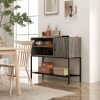 Designed for Versatility: This industrial sideboard table features retro wood grains that impart a timeless touch to your house. As a good combination of practicality and aesthetics, it serves well in the kitchen, dining room, living room, entryway and other places.