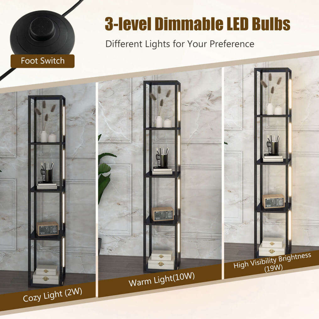● 4 Open Shelves: This modern floor lamp features 4 open shelves that make all the items completely visible for easy searching and better displaying. And the smooth surface facilitates daily maintenance.