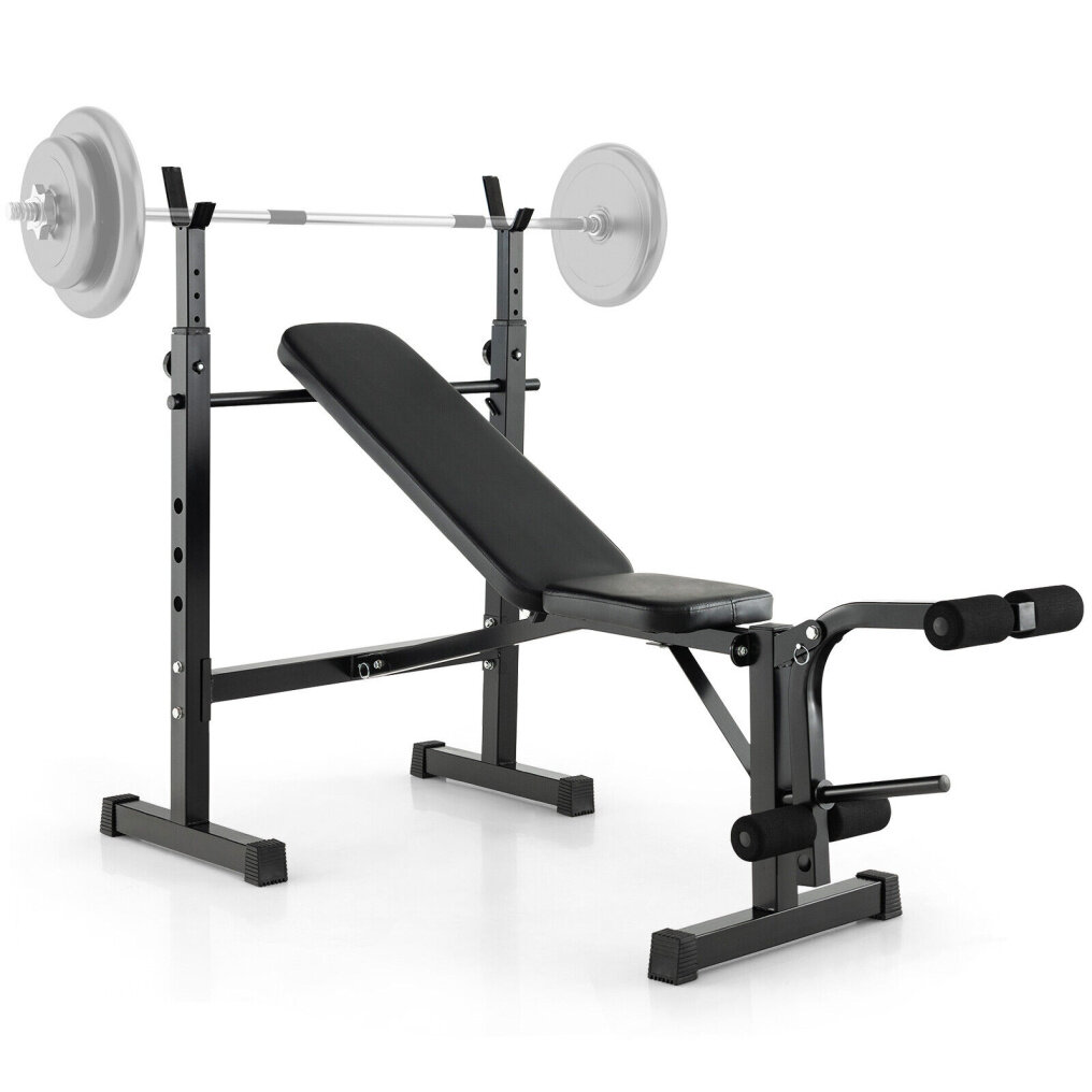 ● Multipurpose Workout Equipment: This all-in-one fitness equipment includes an adjustable weight bench, barbell rack and leg developer, allowing you to do lever bench press, one-arm dumbbell row, dumbbell press, leg flexion & extension, sit-ups and more. Besides, the 1" standard-sized weight plate post can hold up to 66 lbs/30 kg.