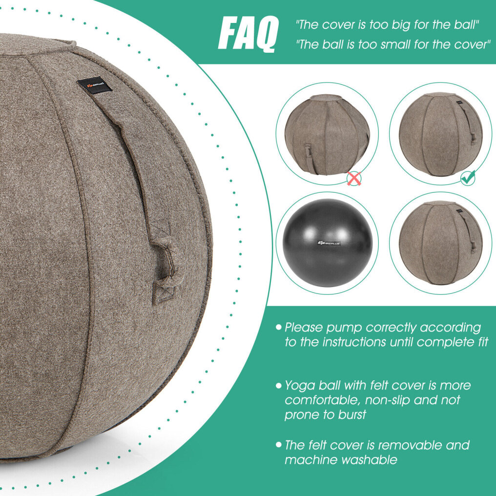 Complete Accessories & Easy to Inflate: The package includes an anti-burst yoga ball, a felt ball cover, a hand pump, 3 ball plugs, a plug puller, a straw and a detailed instruction manual. Please pump correctly according to the instructions until the inner ball completely fits the outer cover.