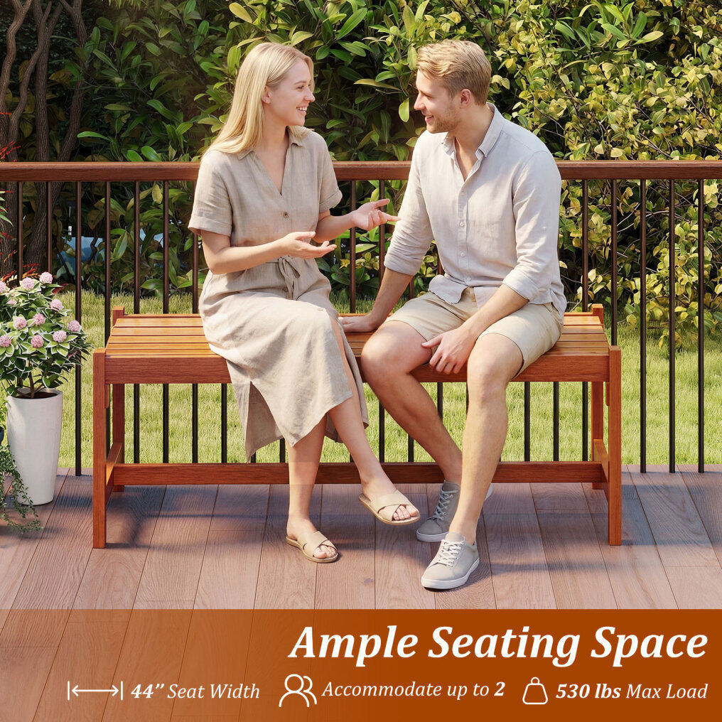 ● Ample Seating Space: Featuring 44" seat width, this dining bench comfortably accommodates up to 2 adults. The generous size makes it perfect for sharing outdoor meals or relaxing together.