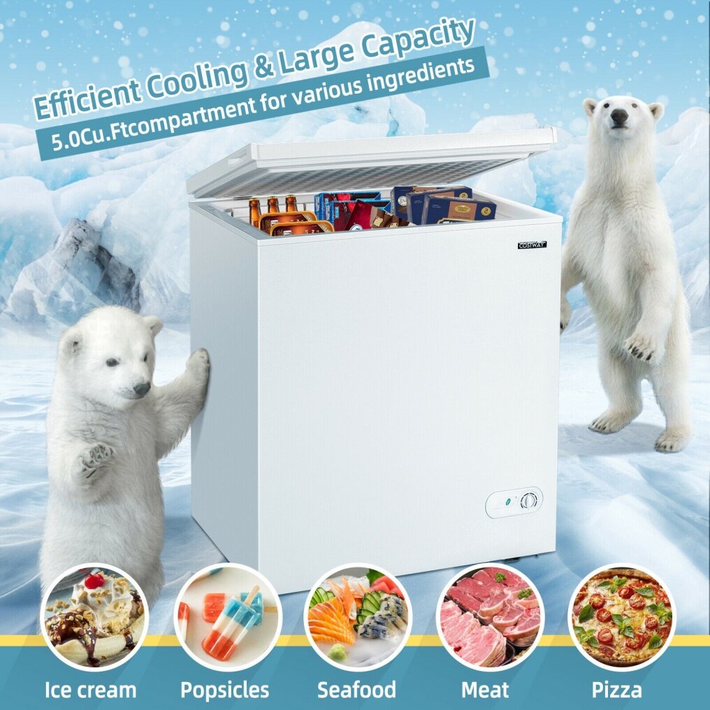 Do you need a freezing storage space for your favorite frozen food? Then this 5.0 cu.ft chest freezer will be your best choice.
