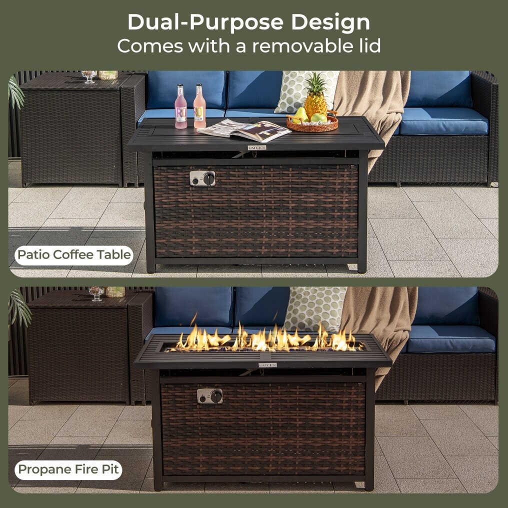 ● Robust and Elegant Construction: Crafted from reinforced metal, the frame of the fire pit table withstands long-time use. The elegant mix brown PE rattan also endures prolonged service life and maintains aesthetic appeal.