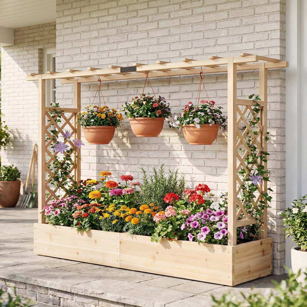 ● Perfect for Outdoor Spaces: The freestanding garden bed with trellis is ideal addition for various places like patio, garden, and balcony. The elevated design creates a comfortable and organized growth environment for your plants.