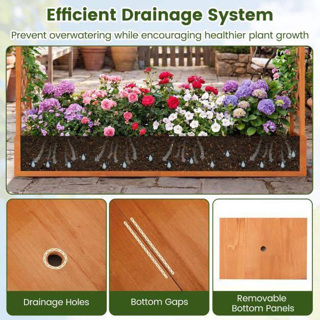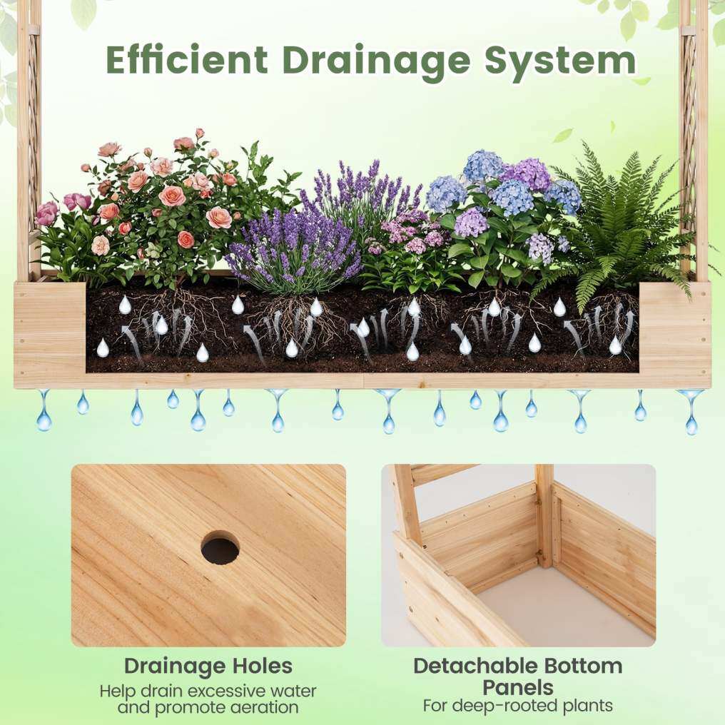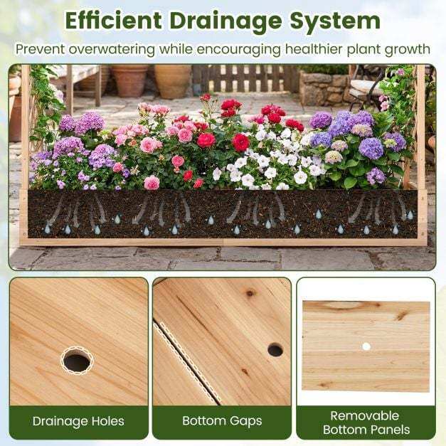 ● Efficient Drainage System: Designed with 8 drainage holes, this raised planter box avoids water accumulation and facilitates air flow around plant roots. Detachable bottom panels support healthier and more robust plant growth by allowing roots to go further into the ground.