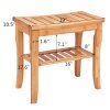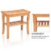 Durable Bamboo Material: Made of 100% quality bamboo material, sturdy and durable. It will not get any stains, discolorations, or instability despite daily showers. Solid bamboo construction makes this bench able to withstand 85 kg. Its surface is smoothly finished by waterproof varnish.