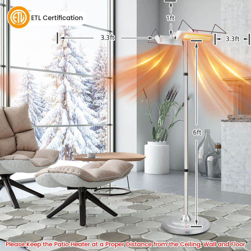 ● Simple Installation: Coming with elaborate instructions and all necessary accessories, this double electric heater is simple to put together. Moreover, the heater is certificated by ETL, so you can use it with ease. Note: Please use the heater under the eaves for outdoor use.