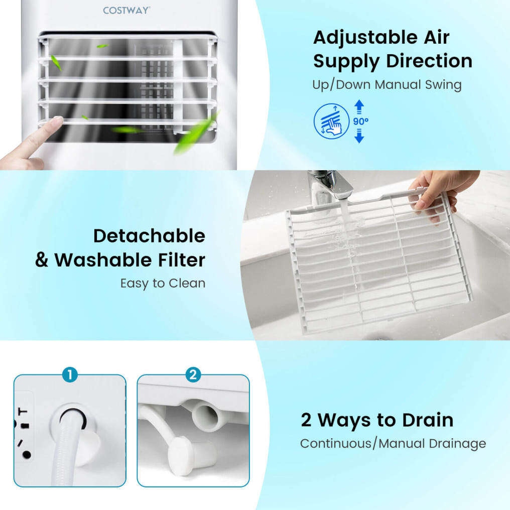 ● Enjoy Instant Cooling to the Whole Room: This 10000 BTU portable air conditioner provides steady and fast cooling to rooms up to 350 sq.ft, suitable for living room, bedroom, office and more. This portable air conditioner can cool the room down to 61℉ with 90° manual vertical swing.