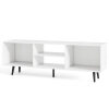 ● Solid Foundation for Stability: Built with strength in mind, the TV cabinet comes with 5 robust metal legs that ensure a substantial load capacity of 198 lbs. Moreover, this cabinet is equipped with protective foot pads for great floor protection.