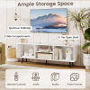 ● Bottom Clearance and Easy Maintenance: Designed for convenience, the TV stand offers 5" high bottom clearance for easy sweeping. In addition, it features a smooth surface that simplifies daily maintenance.