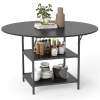 ● Convenient Under Desk Storage: Equipped with 2 open shelves positioned beneath the tabletop, the wooden table provides convenient storage for dining necessities like tableware, seasonings, and magazines. Hence, you can keep your dining space organized with all essentials within arm's reach.