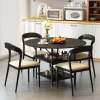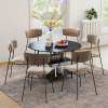 ● Exquisite Details: Boasting a easy-to-maintain veneer, the dining table for 6 is simple to keep spotless after meals. Moreover, rounded corners enhance safety for users, while protective pads on the feet safeguard your floors and maintain stability.