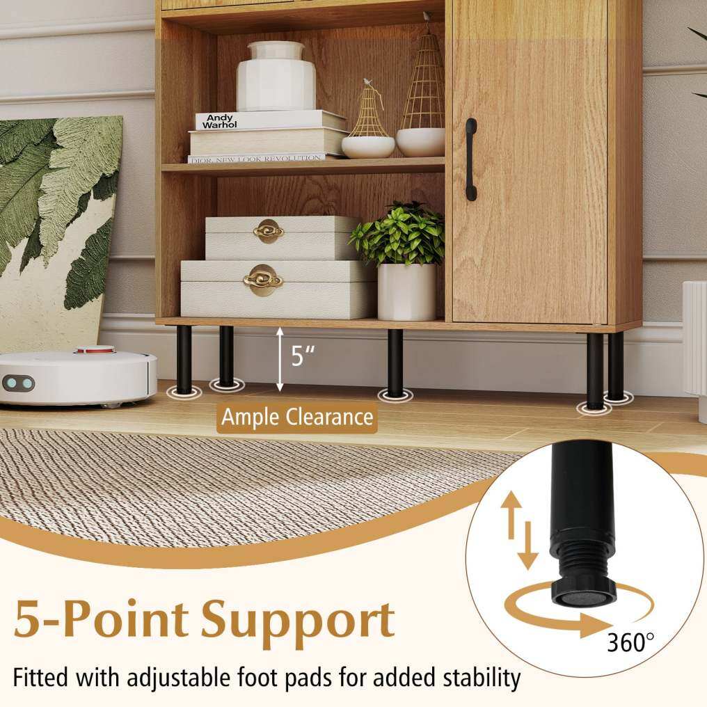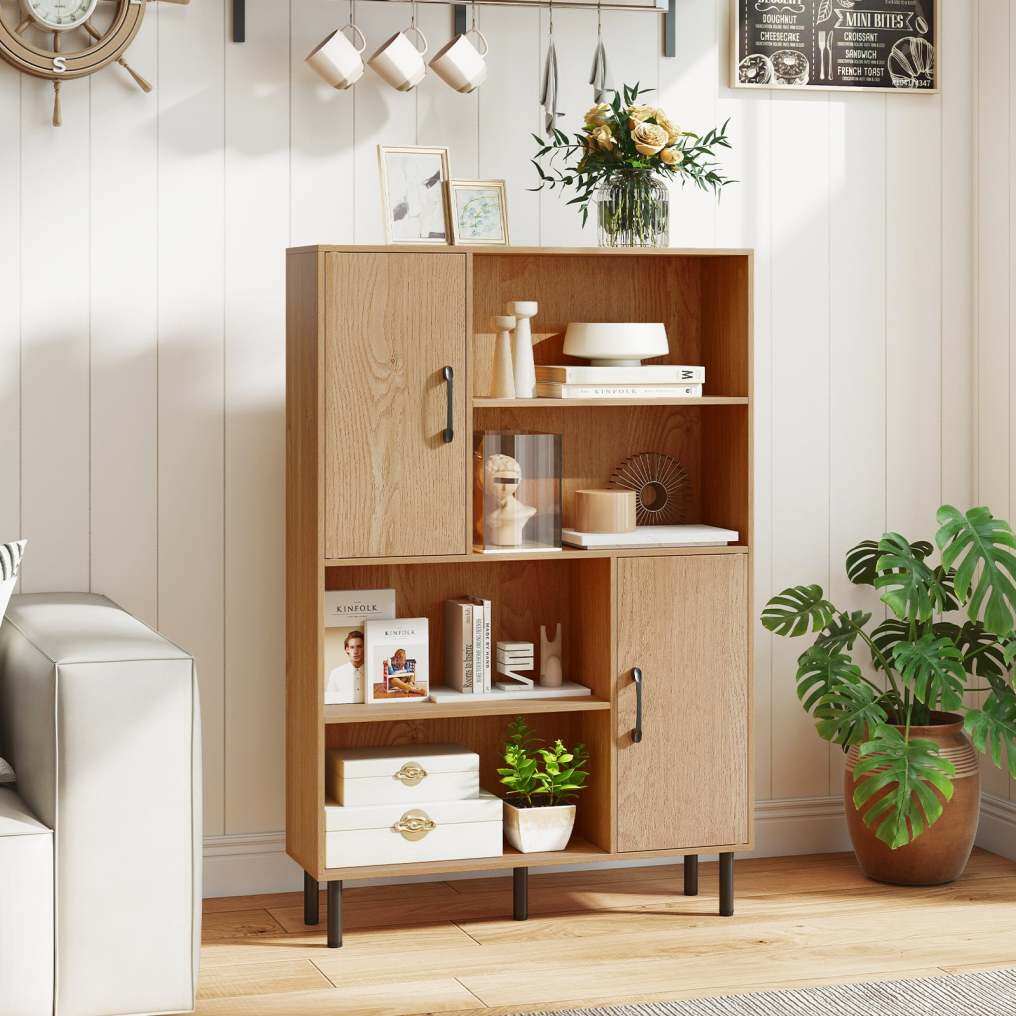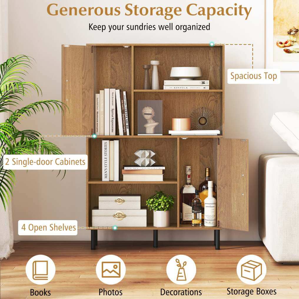 Versatile Storage Options: The storage cabinet pairs a spacious top with 4 open shelves so you can stage plants and novels while keeping clutter tucked behind 2 doors for a magazine-worthy look. Arrange, hide, and swap items at will—this cabinet with 2 doors adapts to seasons and moods without breaking visual flow.