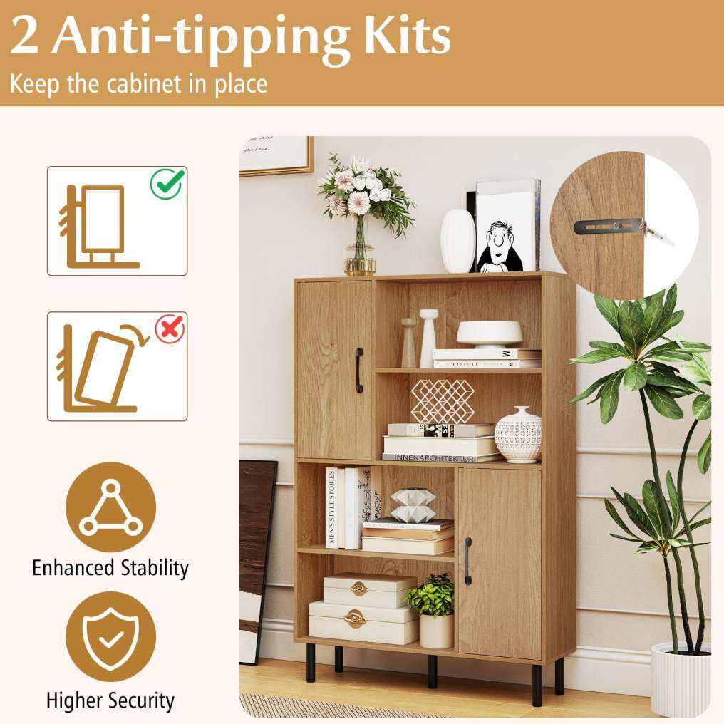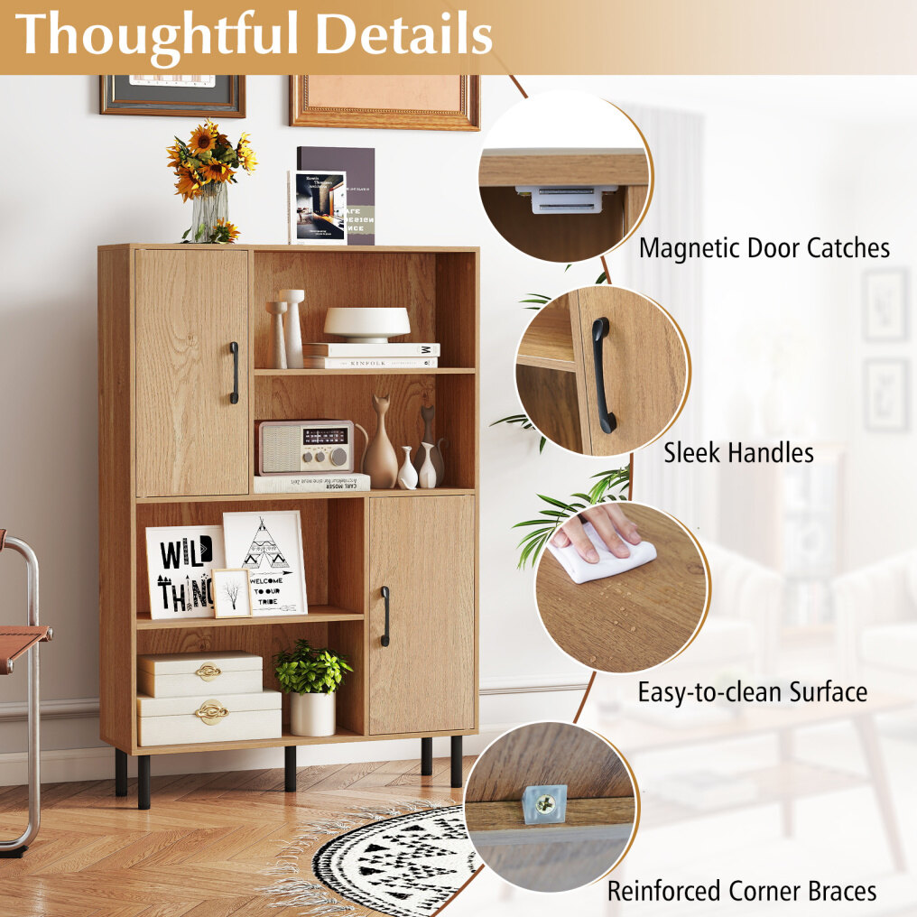 47 Inch Storage Cabinet Freestanding Bookcase with 2 Doors and 4 Open Shelves-Natural