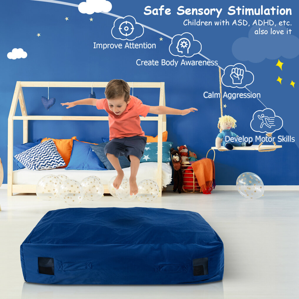 ● Safe and Versatile Mat: Filled with soft foam blocks, it absorbs impact and offers the ultimate sensory feedback. It's perfect for children with sensory processing disorders (such as ASD, ADHD and more), as well as individuals of all ages who enjoy active play.