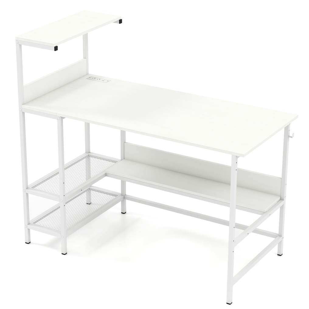 ● Organize Everything Efficiently: This home office desk maximizes vertical space with a top shelf for decorations, 2 metal mesh shelves and an L-shaped shelf for supplies, plus a hanging hook for bags and headphones. Every component is strategically designed to free up your tabletop for essential work tasks and personal decorations.