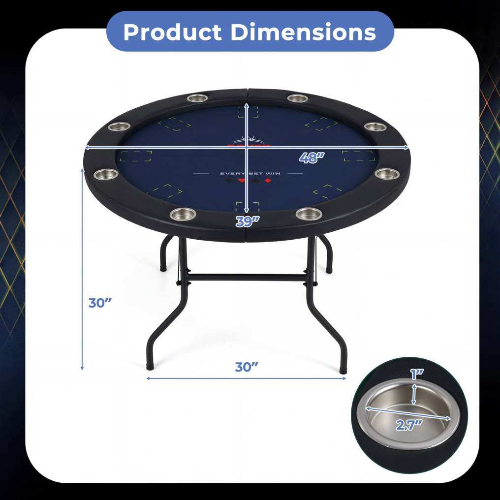 ● Sturdy & Long-Lasting Structure: Built with robust metal legs that support up to 220 lbs, this 8-player poker table is constructed for reliable and long-term use. Also, the triangular support design, combined with anti-slip foot pads, enhances stability to keep the table secure during intense games.
