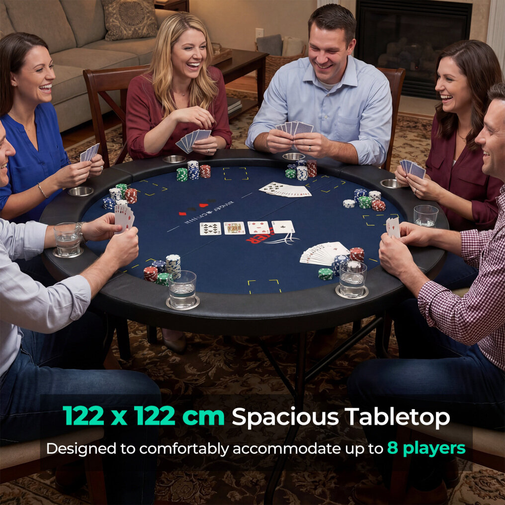 ● Spacious Poker Table: Featuring a generous 48" x 48" playing tabletop, this poker table provides ample space for each player, ensuring a comfortable gaming experience. Plus, it is designed to comfortably accommodate up to 6-8 players, making it ideal for games like blackjack, Texas Hold'em, or other card games.