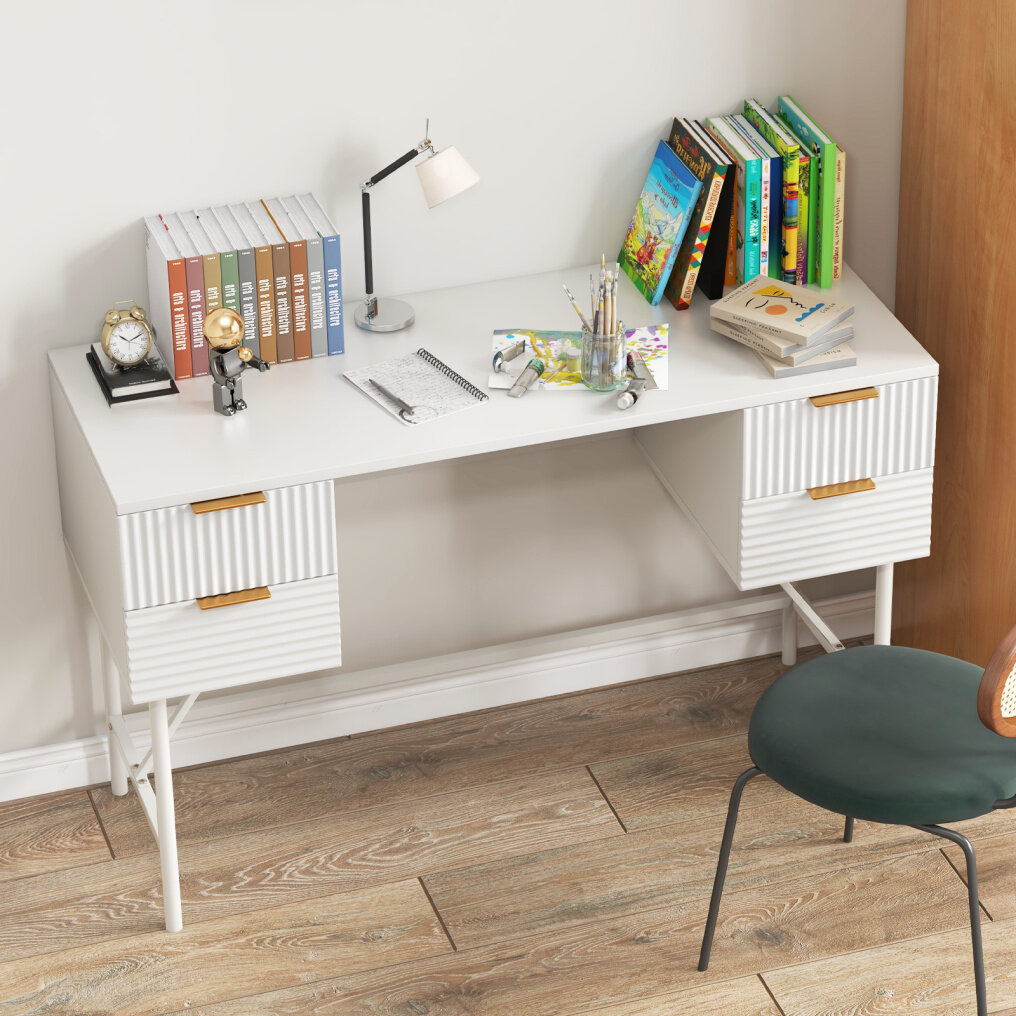 ● Multipurpose Working Spot: The pure white looking and drawers with rippled design endow understated elegance to the workstation, making it a good addition to home and office. In addition to be a writing desk, it can be served as a computer desk, study desk, makeup table as well.