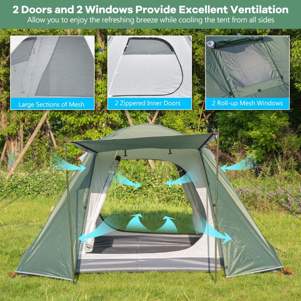 Unique Double-Layer Design & Large Tent Porch: The double-layer tent includes an inner tent and a detachable outer tent. You can use the inner tent separately for promoting air circulation, or you can use the combination tent for more protection from rain and ultraviolet. Furthermore, equipped with 2 poles for supporting the rainfly, it can immediately become an awning tent for resting, playing, or enjoying the scenery.