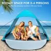 Roomy Space: The large pop-up beach tent measures 200 x 142 x 146 cm (L x W x H) that can accommodate 2-4 persons, which is perfect for enjoying vacations with your family. Moreover, you can also use the front door as a mat offering extra space for more activities. And it can also be zipped up, so the tent would be a private beach cabana.